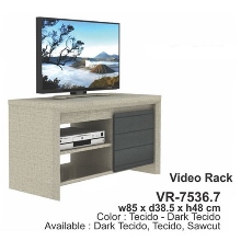 *Harga Hubungi CSRak TV Expo VR – 7536.7 Dimensi : W 85 x D 38.5 x H 48 cm Color : Canyonoak-Sandalwood, Tecido-Swod Bahan : Particle Board Maksimal TV 42 inch